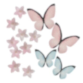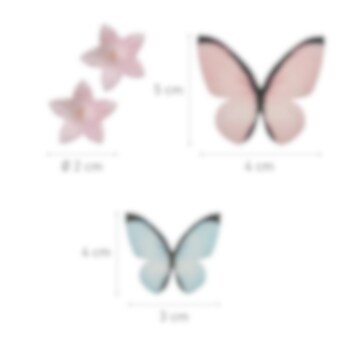 Koristele kakut, kuppikakut ja leivonnaiset näillä kauniilla ja syötävillä vohvelikoristeilla. Setissä on 35 pientä kukkaa, 2 sinistä perhosta ja 2 suurempaa vaaleanpunaista perhosta, jotka yhdessä luovat tyylikkään ja satumaisen ilmeen. Täydellinen syntymäpäiville, häihin ja muihin juhlatilaisuuksiin, joissa pienet yksityiskohdat tekevät eron!
