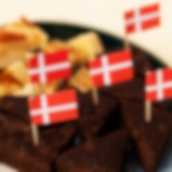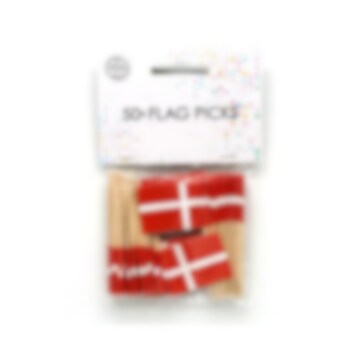 50 kakkutikkua Tanskan lipun kuvilla. Koristele leivonnaiset näillä synttäreille tai muihin juhliin. Lippujen korkeus on noin 6,5 cm.