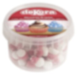 Suloisia kuin metsän aarteet! Nämä minimarengit on muotoiltu pieniksi vaaleanpunavalkoisiksi sieniksi. Niiden päällä on koristeellisia helmiä, jotka antavat niille leikkisän ulkonäön. Ripottele kuppikakkujen, kakkujen ja jälkiruokien päälle.