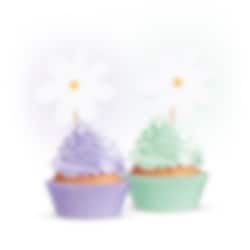 Koristele erityisen kauniisti näillä päivänkakkaroiden muotoisilla muffinikoristeilla. Valkoiset kukat keltaisella keskustalla antavat kuppikakuille, muffineille ja muille herkuille kesäisen ja viehättävän ilmeen. Ne sopivat täydellisesti syntymäpäiville, babyshowereihin, piknikeille tai kesäjuhliin.
