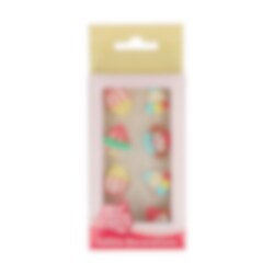 Koristele kuppikakut, kakut tai leivonnaiset sirkusjuhliin näillä värikkäillä sokerikoristeilla FunCakesilta. Aseta ne leivonnaisten päälle tai keksien kuorrutukseen luodaksesi yhtenäisen ja leikkisän teeman helposti.
