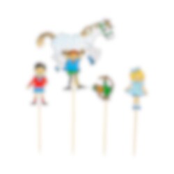 4 kpl cake topperseja ihastuttavilla Peppi Pitkätossu -kuvilla. Koristele niillä kakkuja tai muffinsseja. Valmistettu puusta ja pahvista.
