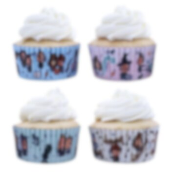 60 kpl upeita muffinssivuokia neljässä eri mallissa. 15 kpl jokaista mallia. Kaikissa on kauniita kuvioita Harry Potterista. Täydellisiä Harry Potter -teemajuhliin.