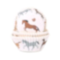50 kpl muffinssimuoit, joissa on kauniiden hevosten kuvioita valkoisella pohjalla. Todella mukava lisävaruste muffinien tai kuppikakkujen paistamiseen ennen juhlia hevoseteemalla. Muffinssimuottien halkaisija on noin 5 cm.