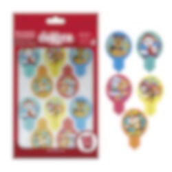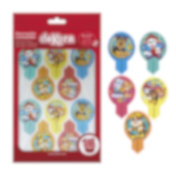 20 kpl muffinssikoristeita erilaisilla hauskoilla Paw Patrol TV-sarjan kuvilla. Täydellinen lisä muffineihin ennen Paw Patrol -teemaisia juhlia. Muffinikoristeet ovat halkaisijaltaan noin 4,5 cm. Ainesosat: Perunatärkkelys, vesi, oliiviöljy, maltodekstriini, väriaineet (E102, E122, E133, E151). Säilytä viileässä ja kuivassa.