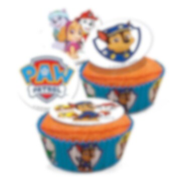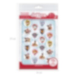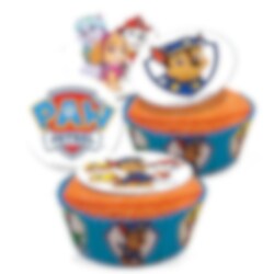 20 kpl sokerimassasta tehtyä muffinssikuvaa joissa motiiveina sankarit teemasta Ryhmä Hau. Muffinssikuvat ovat syötäviä ja niistä tulee hienot koristeet muffinsseillesi. Muffinssikuvat ovat noin 3,4 cm kokoisia halkaisijaltaan ja ne ovat valmiita joten ne voi asettaa muffinsseille koska haluaa. Kuvat ovat säilytettävä kuivassa ja viileässä tilassa ja kestävyysaika on yli vuoden.