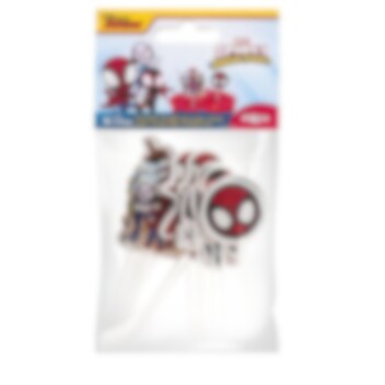 16 kpl. hienoja cake topperseja, joissa on kuvia Spideystä ja hänen ystävistään. Täydellinen supersankarisilauksen lisäämiseen leivonnaisiin juhlia varten. Koko vaihtelee 8 ja 10 cm korkeuden välillä.