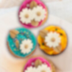 Koristele leivonnaiset tyylikkäästi ja helposti näillä kauniilla, syötävillä vohvelikoristeilla. Pakkaus sisältää valkoisia kukkia ja tyylikkäitä kultaisia lehtiä, jotka muuttavat nopeasti kuppikakut, kakut ja muut herkut pieniksi taideteoksiksi. Täydellisiä syntymäpäiville, häihin tai muihin juhliin – tee vaikutus minimaalisella vaivalla!