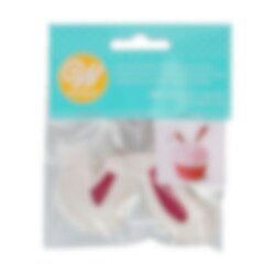 24 kpl. muffinikoristeita, jotka esittävät valkoisia kaninkorvia vaaleanpunaisilla glitter-yksityiskohdilla. Täydelliset leivonnaisten koristeluun pääsiäiseksi.