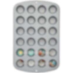 Käytännöllinen, tarttumaton muffinssivuoka 24 minimuffinssille. Tarttumattoman pinnoitteen ansiosta muffinssit on helppo irroittaa. Voit käyttää myös muffinssimuotteja, joiden pohjan halkaisija on 3,5 cm. Tarjotin on kooltaan 40 x 26 cm, ja se on valmistettu korkealaatuisesta alumiinista, joten se on pestävä käsin.