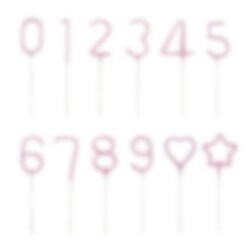 Vaaleanpunaiset tähtisadetikut numeroiden 0-9 muodossa juhlakakun koristeluun. Numeroiden lisäksi mukana on myös tähti ja sydän. Tähtisadetikut ovat 17 cm korkeita, ja ne myydään yksittäin. Ne palavat noin 30 sekuntia.