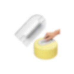 Kiva tasoitin Dekofeilta. Tällä voit tasoittaa pinnoitteen tai marsipaanin kakun päälle helposti juhliin, synttäreille tai häihin. Tasoitin on valmistettu muovista ja sen koko on noin 16 x 8 cm.