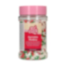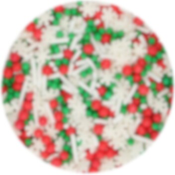Tällä juhlallisella punaisen, vihreän ja valkoisen värisellä strösselimixillä voit koristella nopeasti ja helposti kuppikakkuja ja muita kakkuja joulujuhlia varten.