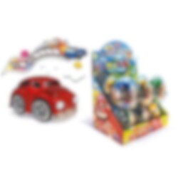 Lelumuna, joka sisältää auton ja pussin herkullisia hedelmänmakuisia karamelleja. Hauska lisä lahjakassiin, tai miksei jopa piñatan täytteeksi. Munat myydään yksittäin, ja auto on saatavana eri väreissä.