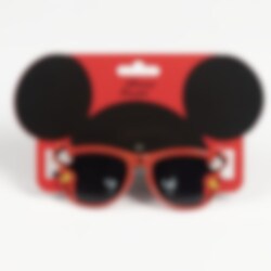 Premium-aurinkolasit lapsille hienoilla yksityiskohdilla ja Mikki Hiiri -kuviolla. Aurinkolasien sangoissa on Mikki Hiiri molemmilla puolilla.