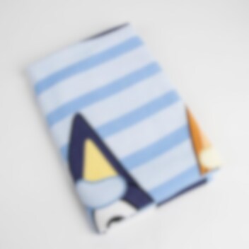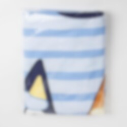 Pyyhkeen mitat ovat 70 x 140 cm, ja se on täydellinen auringonottoon tai ympärille kiedottavaksi. Pakollinen tuote kaikille Bluey-faneille.