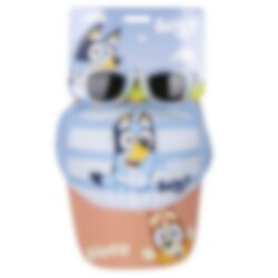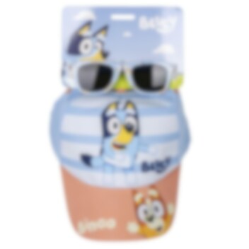 Täydellinen setti, joka sisältää tyylikkään sinisen lippalakin ja premium-aurinkolasit, molemmat lasten koossa. Laseissa on kuvia Bluey-sarjasta.