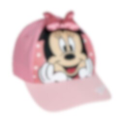 Tämä vaaleanpunainen lippis Minni Hiiri -kuviolla on todellinen suosikki pienille Disney-faneille. Edessä on iloinen Minni Hiiri ja ylhäällä on kiiltävä satiinirusetti, joka antaa lippikselle leikkisän ilmeen. Lippaan on brodeerattu Minnie valkoisella – hieno yksityiskohta.