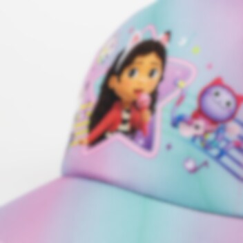 Kimalteleva lippis Gabby’s Dollhouse -teemalla. Värikäs painatus Gabbysta ja hänen kissaystävistään hohtavaa pastellitaustaa vasten. Leikkisä ja värikäs asuste, josta tulee nopeasti suosikki pienten sarjan fanien keskuudessa.