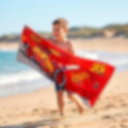 Tämä upea kylpypyyhe Disney Autot -teemalla ja Salama McQueenilla on täydellinen varuste vauhdikkaisiin rannan tai uima-altaan seikkailuihin. Sen värikäs kuva numerosta 95 kirkkaanpunaisella taustalla tekee siitä nopeasti suosikin kylpemisen jälkeen.