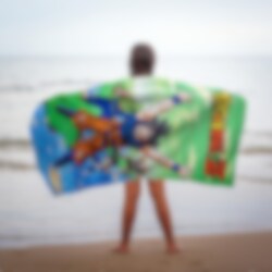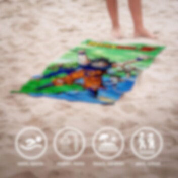 Superhieno kylpypyyhe, jota koristaa Dragon Ballista tutut Goku ja hänen toverinsa. Sopii täydellisesti rannalle tai uima-altaalle. Kylpypyyhe on virallisesti lisensoitu ja valmistettu 100 % puuvillasta.