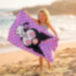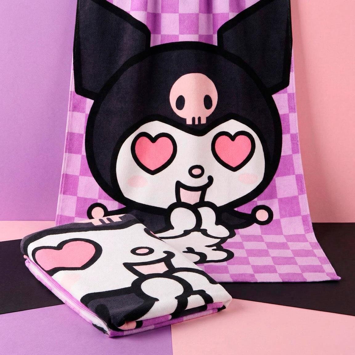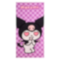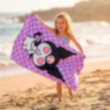 Kääri itsesi Kuromin pehmeyteen upean kylvyn jälkeen! Tässä kylpypyyhkeessä on suosittu Sanrio-hahmo ikonisine sydänsilmineen violettia ruudullista taustaa vasten. Muotoilu todella tavoittaa hänen persoonallisuutensa ja tekee siitä hauskan yksityiskohdan uima-altaalla tai kylpyhuoneessa.