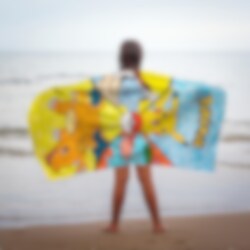 Pyyhkeen mitat ovat 70 x 140 cm, ja se on täydellinen auringonottoon tai ympärille kiedottavaksi. Pakollinen tuote kaikille Pokémon-faneille.