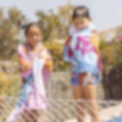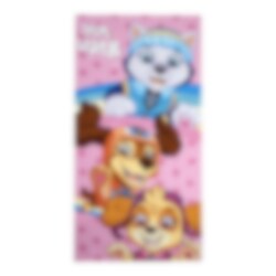 Vaaleanpunainen pyyhe, jossa on kaunis kuva Ryhmä Haun pelastuskoirista – täydellinen rannalle tai uima-altaalle. Pyyhe on virallisesti lisensoitu tuote ja valmistettu 100 % nopeasti kuivuvasta polyesterista.