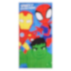 Anna Spideyn ja hänen ystäviensä Iron Manin ja Hulkin lähteä mukaan seuraavaan kylpyseikkailuun. Tämä värikäs kylpypyyhe on valmistettu 100 % nopeasti kuivuvasta polyesteristä, mikä tekee siitä kätevän pakata mukaan niin rannalle kuin uimahallillekin.