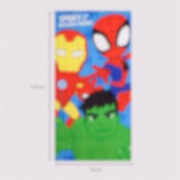 Pyyhe on virallisesti lisensoitu ja sen mitat ovat 70 x 140 cm, joten siinä on runsaasti tilaa kuivata itsensä tai levätä auringossa. Käytännöllinen lisävaruste kaikille lapsille, jotka eivät saa tarpeekseen Spideystä ja hänen sankarijoukkueestaan.