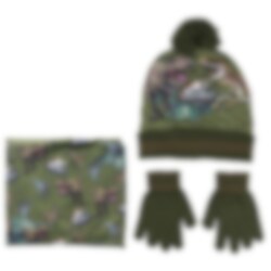 Valmistaudu kylmiin päiviin tällä Jurassic Park -setillä, joka sisältää pipon, kaulaliinan ja hanskat. Täydellinen kaikille pienille dinosaurusfaneille! Sopii erinomaisesti lahjaksi tai talvivaatekaappin täydennykseksi. Setti on valmistettu akryyli-, polyesteri- ja elastaanisekoitteesta.