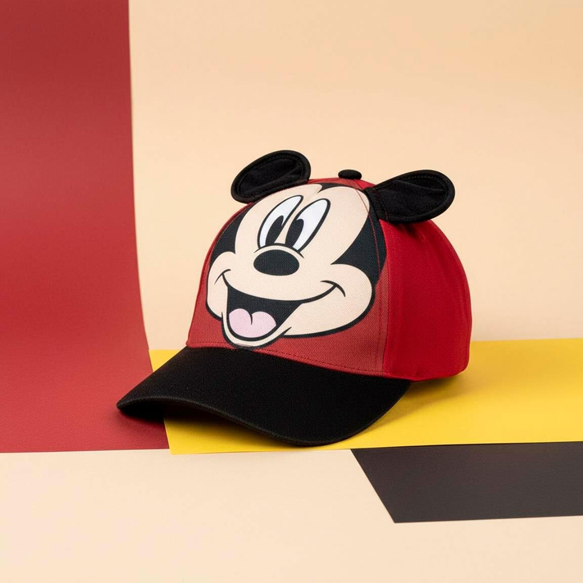 Leikkisä lasten lippis Mikki Hiiri -teemalla, jonka klassinen design ja söpöt 3D-korvat antavat sille erityisen viehättävän ilmeen. Täydellinen aurinkoisille päiville, leikkiin ja retkille.