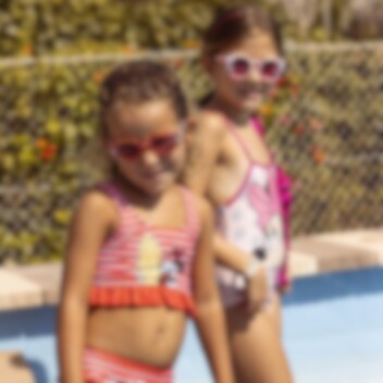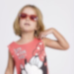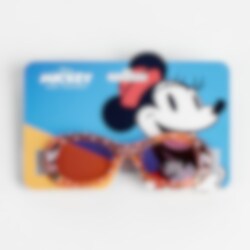 Suojaa silmäsi tyylillä Minni Hiiren kanssa! Nämä kimaltelevat vaaleanpunavalkoiset aurinkolasit ovat leikkisät sekä käytännölliset – täydelliset Disneyn klassisen hahmon pienille faneille.