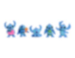 5 kpl keräilyhahmoja, jotka esittävät Lilo & Stitch -elokuvasta tuttua Stitchiä erilaisissa hauskoissa ja ilmaisuvoimaisissa asennoissa. Hahmot ovat noin 5,5 cm korkeita ja täydellisiä sekä leikkiin että keräilyyn. Sopii yli 3-vuotiaille lapsille.