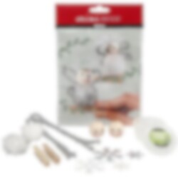 DIY-askartelusetti, joka sisältää perusmateriaalit omien kauniiden enkeleiden tekemiseen ja ripustettavaksi klemmarien varaan. Toimii hienosti joulukoristeena.