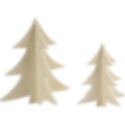 2 kpl vanerimateriaalista valmistettua 3D-kuusta, jotka on helppo koota ja jotka ovat mukava lisä joulukoristeisiin. Maalaa puut akryylimaalilla elävöittääksesi niitä. Puiden koko on koottuna 13 x 18 cm.
