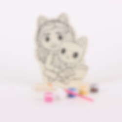 Setti sisältää puuhahmon (14 x 18 x 5 cm), siveltimen ja 5 eri väriä. Voit luoda täysin oman värikkään version gabbystä ja hänen kissakaveristaan. Täydellinen askarteluhetki kotona tai luova lahja sarjan pienille faneille.