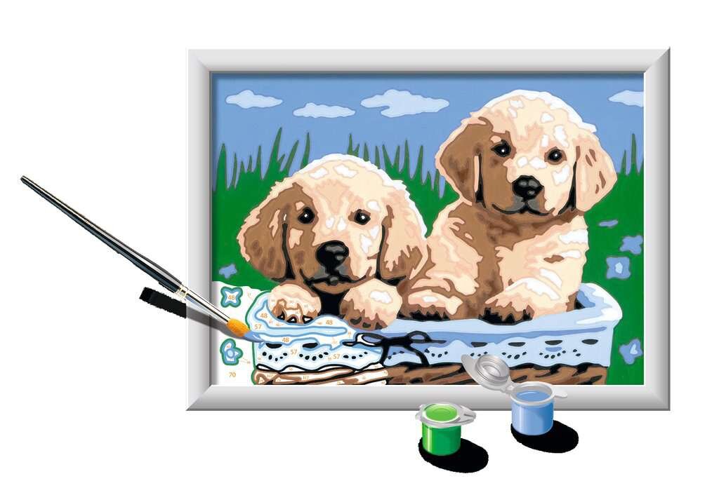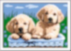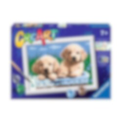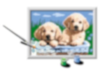 Maalaussetti söpöillää kultaisennoutajan pennuilla. Setti sopii täydellisesti nuorelle aloittelevalle taiteilijalle. Luova harrastus niille, jotka rakastavat maalaamista ja numeroiden seuraamista. Tämä setti on tarkoitettu 7-vuotiaille ja sitä vanhemmille. Maalauksen koko on valmiina noin 13 x 18 cm.