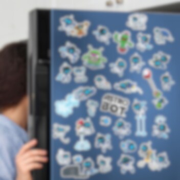 34 kpl. upeita jääkaappimagneetteja erilaisilla Astro Bot -kuvilla – täydellisiä jääkaapin koristeluun! Käytä niitä tärkeiden lappujen kiinnittämiseen tai anna niillä keittiöllesi silaus pelin iloa. Magneetit on jaettu 3 arkkiin ja niiden koko vaihtelee 5-11 cm välillä, mikä antaa koristeluun paljon valinnanvaraa.