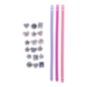 Luo omia rannekoruja trendikkäässä Kuromi-teemassa! Tämä luova DIY-setti antaa lasten suunnitella omia korujaan söpöillä ja hienoilla Hello kitty kuromi -kuvioilla. Täydellinen askarteluhetkiin kotona, synttärijuhlissa tai hauskaksi lahjaksi lapsille, jotka rakastavat Sanrio-hahmoja.