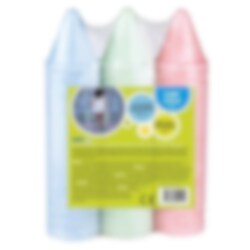 Muuta jalkakäytävä värikkääksi taideteokseksi! Näiden väriliitujen avulla lapset voivat toteuttaa luovuuttaan erilaisten pelien ja leikkien kautta ja piirrellä kaikkea mitä mieleen juolahtaa. Setti sisältää kolme liitua, jotka ovat 19 cm pitkiä.