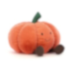 Amuseablesin ihana kurpitsa on kurpitsamaan tähti! Ihanan pehmeä ja pörröinen. Oranssia plyysiä, kaarevat ompeleet ja hauskat pienet jalat suklaanruskeasta kankaasta. Tyylikäs mokkajäljitelmävarsi yläosassa.