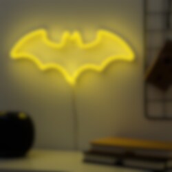Siisti seinävalaisin Batmanin ikonisen logon muodossa. Lamppu loistaa kirkkaan neonkeltaisena – täydellinen yksityiskohta tuomaan huoneeseen hieman Gotham City -tunnelmaa!