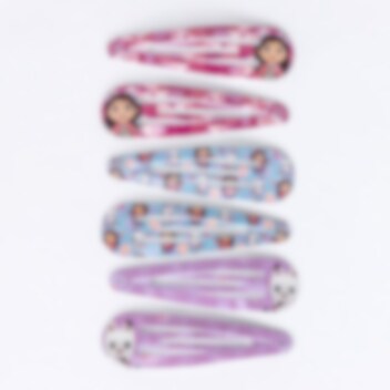 Muuta tavallinen kampaus erityiseksi tämän 6 kpl Gabby's Dollhouse hiuspinnisetin avulla. Nämä värikkäät hiuspinnit ovat täydellisiä lisäämään leikkisän silauksen mihin tahansa asuun. Ihana lahja jokaiselle Gabby's Dollhouse-fanille.