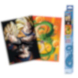2 pientä julistetta, joissa on hienoja kuvia Gokusta ja lohikäärme Shenronista Dragon Ball Z -sarjasta. Täydellinen koriste seinälle. Julisteet ovat korkealaatuisia ja niissä on kiiltävä pinta. Niiden koko on 38 x 52 cm. Tämä on virallisesti lisensoitu Dragon Ball Z -tuote.