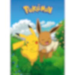 2 pientä julistetta, joissa on värikkäitä kuvia monista eri Pokémoneista niityllä. Täydellinen tuote seinien koristeluun.
