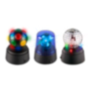 Aloita ultimaattiset juhlat tällä diskopallosetillä! Paketti sisältää kolme diskopalloa, jotka kaikki tuovat juhliin erilaisia valotehosteita. Sisältää klassisen peilipallon, diskopallon punaisilla, vihreillä, keltaisilla ja sinisillä LED-lampuilla ja diskopallon sinisellä vilkkuvalla LED-valolla. Diskopallot ovat täydellisiä lahjaksi! Jokainen diskopallo vaatii 3 x AA-paristot (ei sisälly hintaan). 12 cm korkeita.