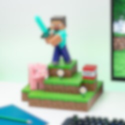 Koe Minecraftin maailma 3D: nä tämän upean dioraamalampun avulla! Valaisin on 30 cm korkea ja sen virtalähteenä toimii USB. Ainutlaatuinen design käsittää TNT-palikan kytkimenä sekä irrotettavia ja siirrettäviä hahmoja, joiden avulla voit luoda erilaisia yhdistelmiä ja kohtauksia suoraan pelistä.