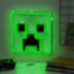 Hieno Creeperin muotoinen seinävalaisin, joka loistaa intensiivisen neonvihreänä – täydellinen yksityiskohta pelihuoneeseen tai lastenhuoneeseen!