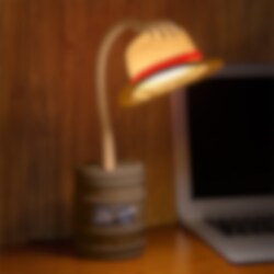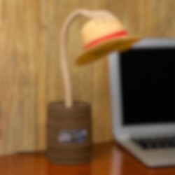 Tämä One Piece -pöytälamppu on suunniteltu Luffyn ikonisen olkihatun muotoiseksi. Joustava varsi seisoo puutynnyrissä – kuin suoraan merirosvomaailmasta. Joustava varsi tekee valon säätämisestä helppoa haluamaasi suuntaan.